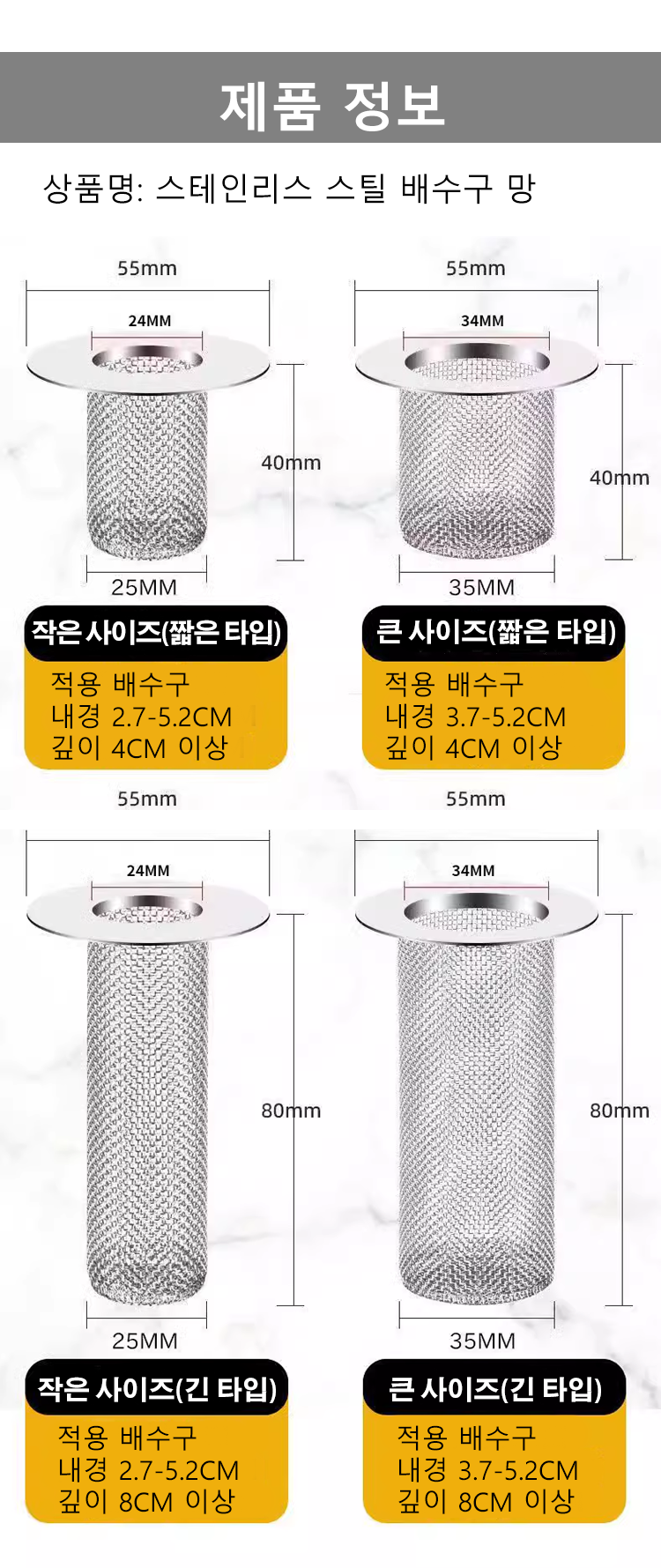 욕실 배수구에 적합한 스테인리스 거름망